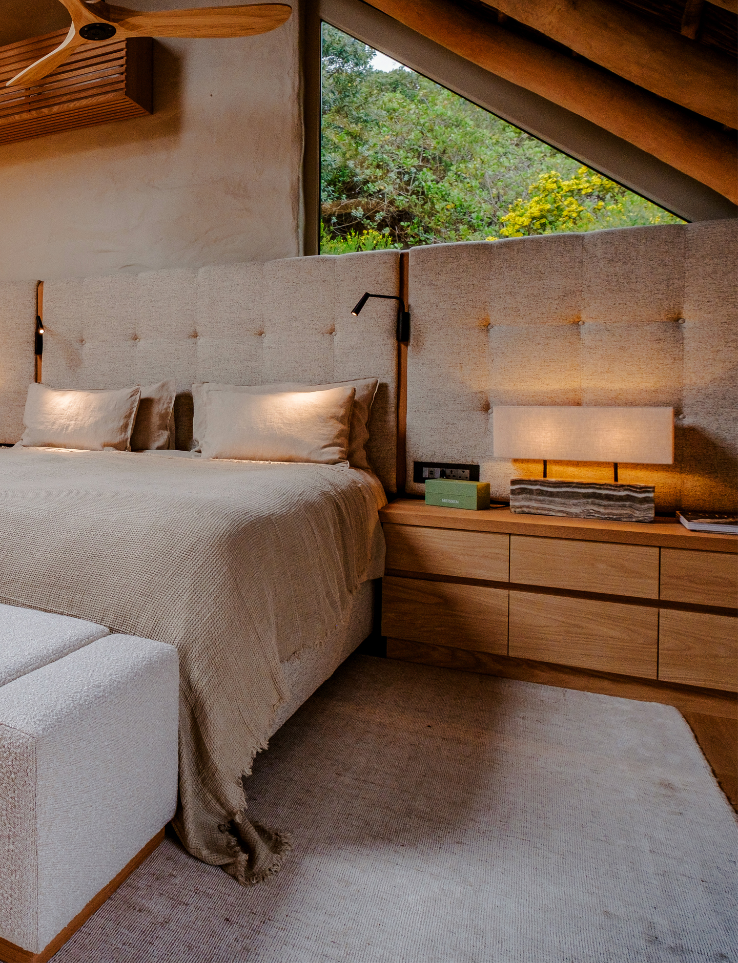 The Villa offers a peaceful, restorative environment designed to slow the pace of living and reconnect guests with the natural surroundings. Artfully crafted interiors, expressed through artisanal craftmanship, refined luxury, and layered lighting, unify a timeless design language.