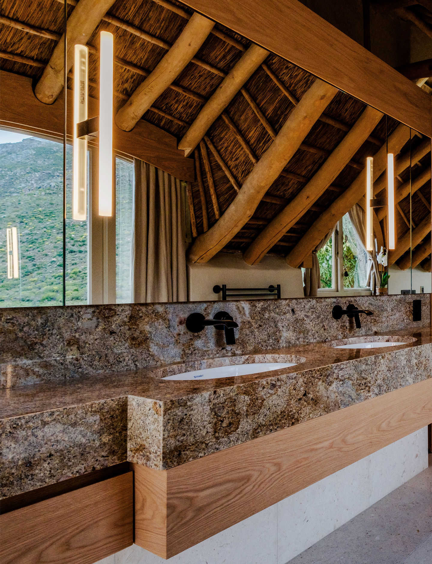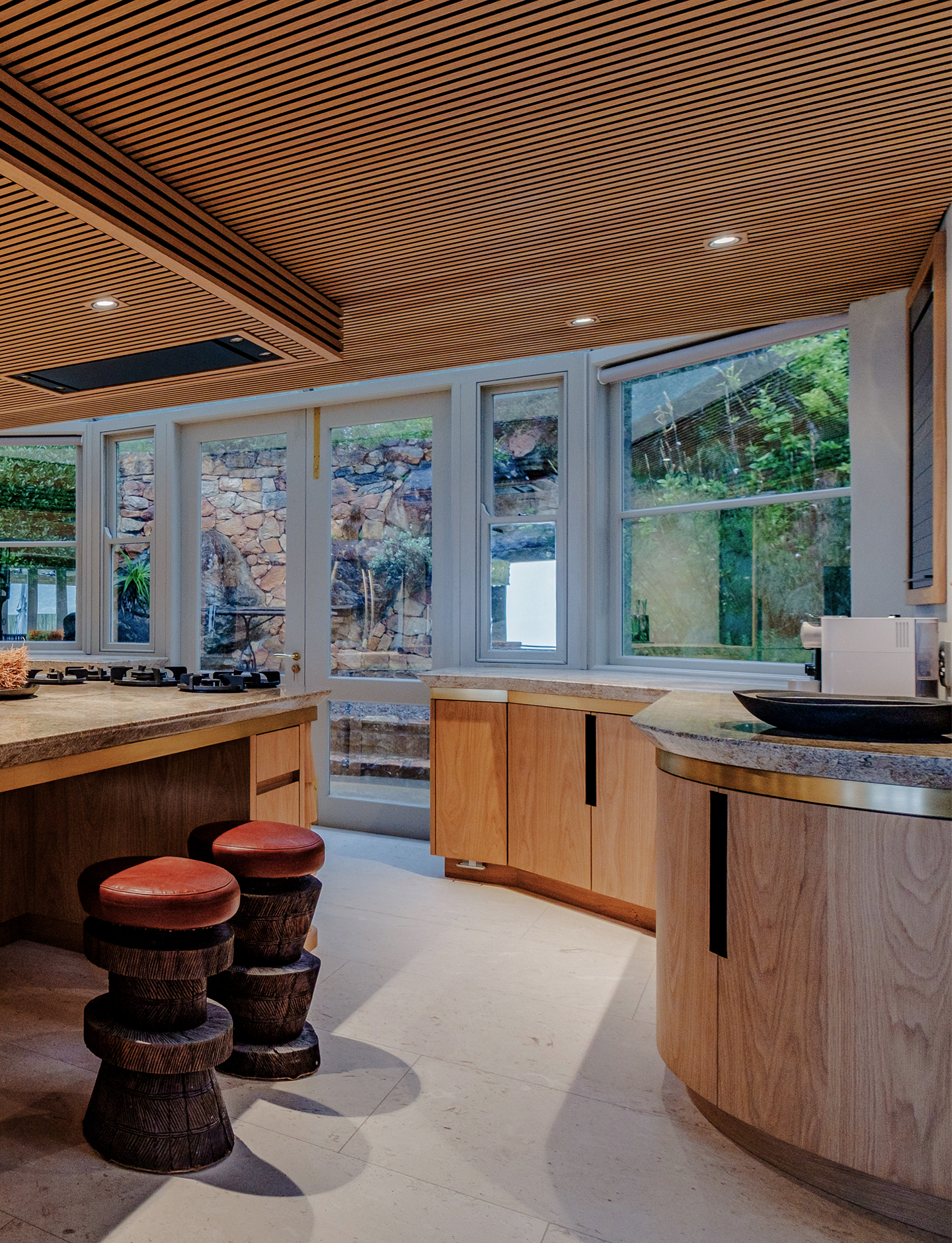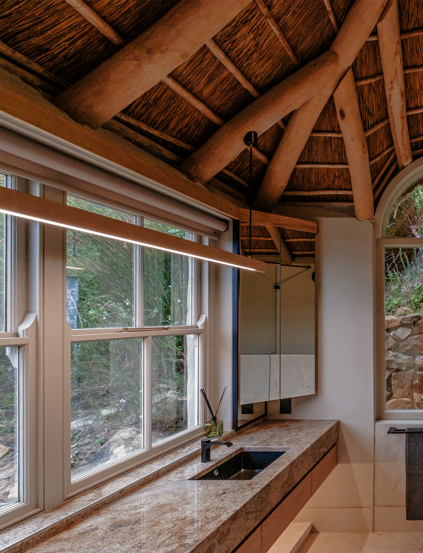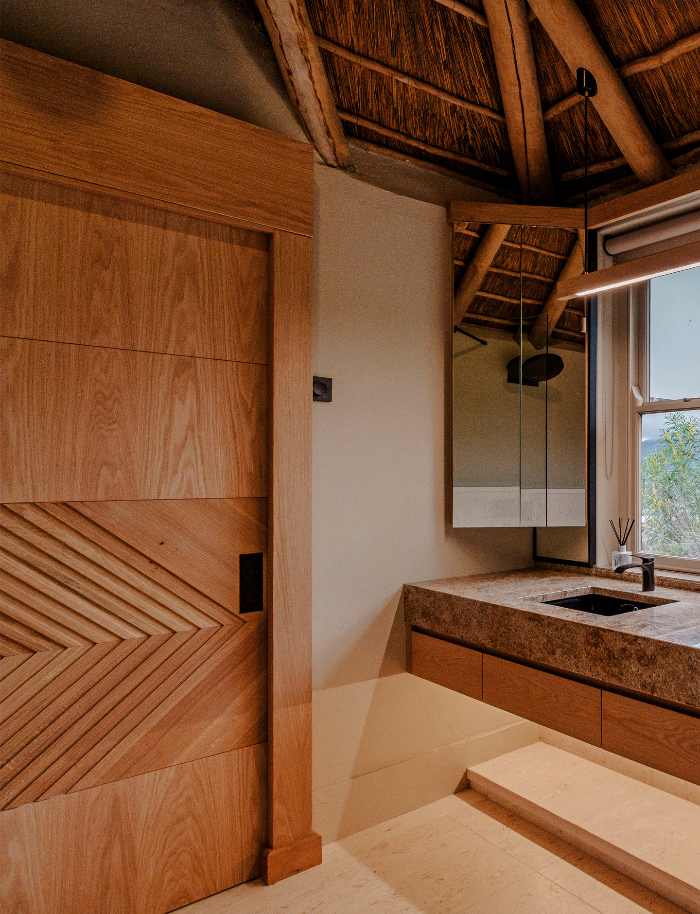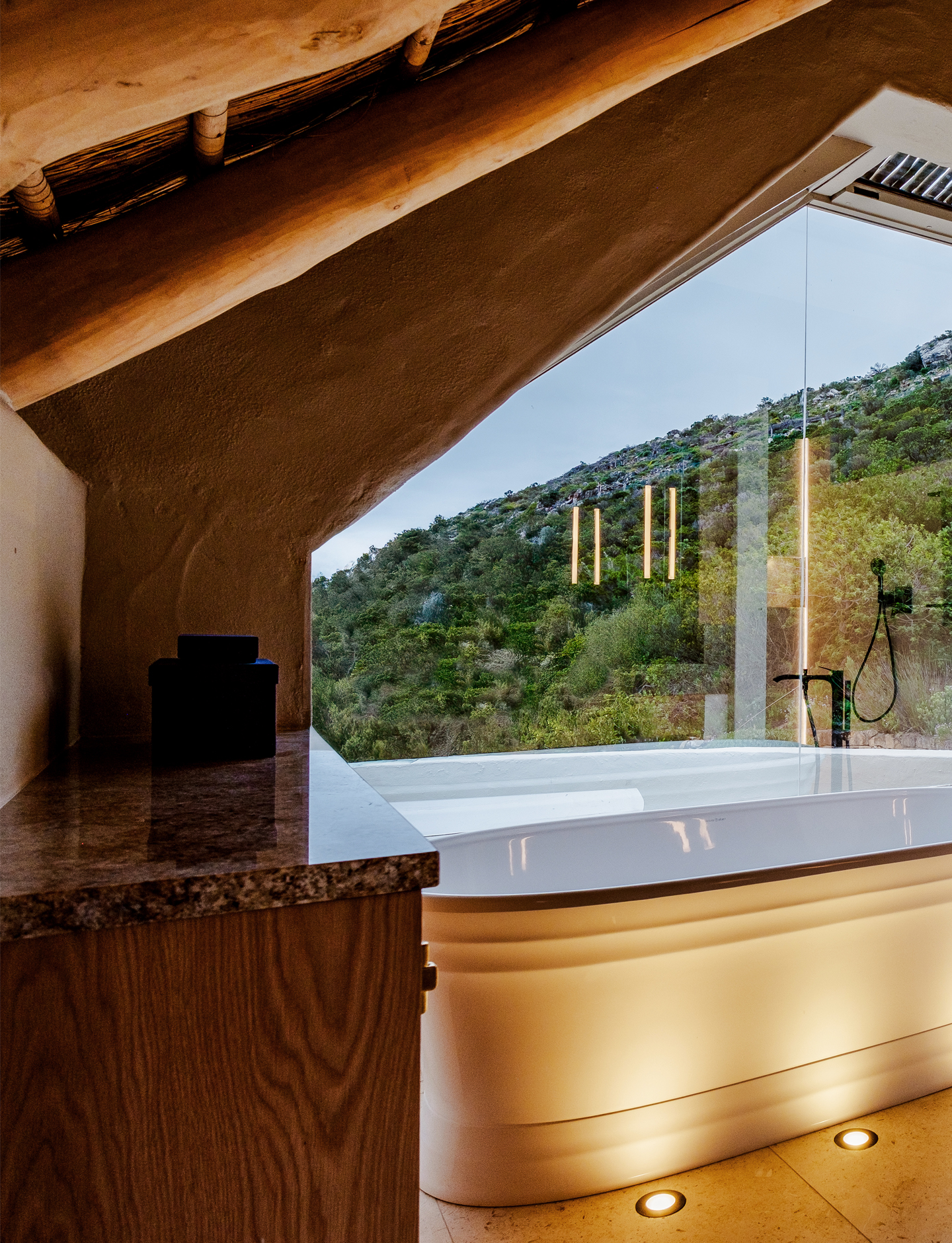 Villa Voyage is a private African sanctuary set within the dramatic mountains of Hout Bay. Conceived as a spa for the senses, this coastal retreat reinterprets traditional South African Architecture through the lens of contemporary Cape luxury esthetic.